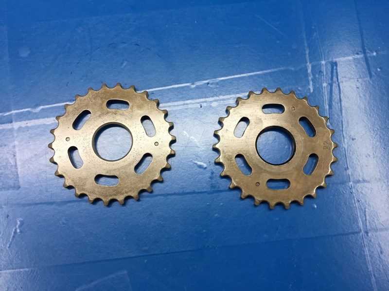 This is the left and right side top VANOS gears, sprockets, solenoids, and impulse wheels off the M62TU engine by BMW