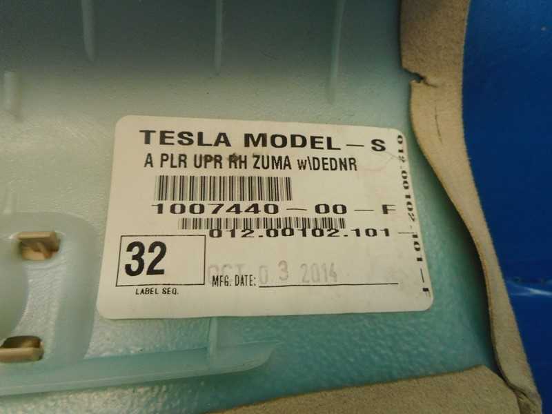Tesla Model S (2012-2016) OEM RH Zuma Alcantara A Pillar Trim Part# 1007440-00-F