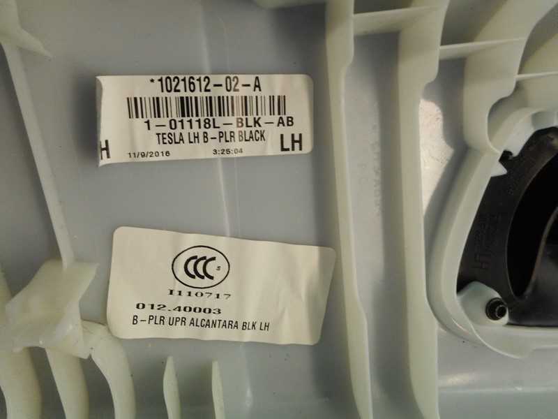 Tesla Model S (2012-2017) OEM LH Black Alcantara B Pillar Trim # 1021612-02-A