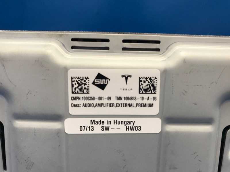 This is the Premium Sound Amplifier for the premium audio system in the Tesla Model S RWD + Dual Motor vehicles