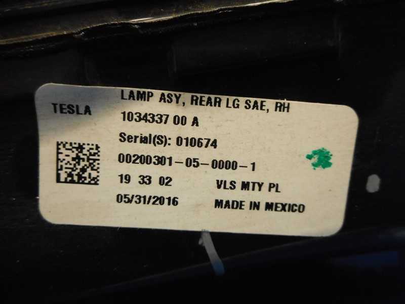This is the Passenger Side Inner Tail Light for the 2015-2017 Tesla Model X RWD + Dual Motor vehicles