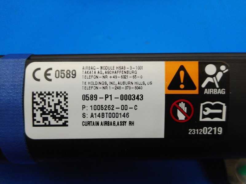 This is the Right Curtain Side Airbag for the Tesla Model S RWD + Dual Motor vehicles